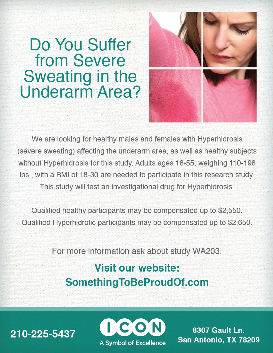 If you have severe underarm sweating and live in or can travel to Texas, please check out this new study being performed by ICON Development Solutions!